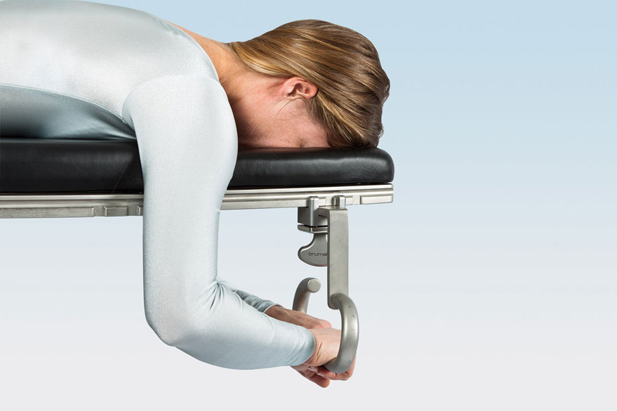 При операциях в положении лежа на животе, пациент может держаться за данный металлический держатель из нержавеющей стали, расположенный под секцией для головы. Его ширина позволяет держаться обеими руками, угол наклона регулируется специальной рукояткой.